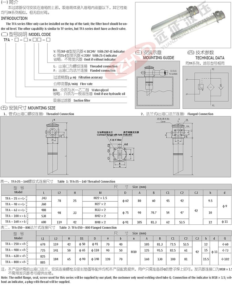 液壓過(guò)濾器廠家介紹TFA系列吸油過(guò)濾器(新型)